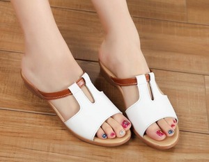 ローヒールで歩きやすいレザーサンダル♪