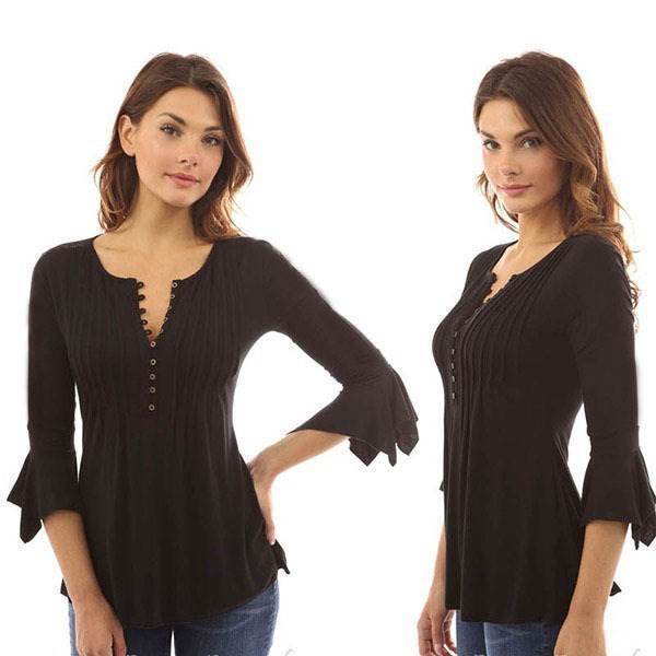 トップス レディース Tシャツ 7分袖 袖あり ペプラム 胸元 切り替え 綿 コットン ラウンドネック Vネック フロントボタン フレア袖 スリム 無地 シンプル お洒落 おしゃれ お出かけ デート 大人 大人女子 通勤 通学 学生 旅行 休日 普段使い 普段着 着回し 10代 20代 30代 春 夏 秋 大きいサイズ S M L XL 2XL 3XL ブラック 黒 パープル 紫 ホワイト 白 ワインレッド