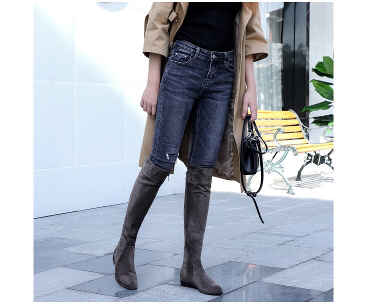 ヒールの高さが2.5㎝と4.5㎝と選べる。膝まで隠れるロングブーツ。シンプルなデザインで色々なコーデに合わせやすい。まだまだ大活躍のアイテムです。