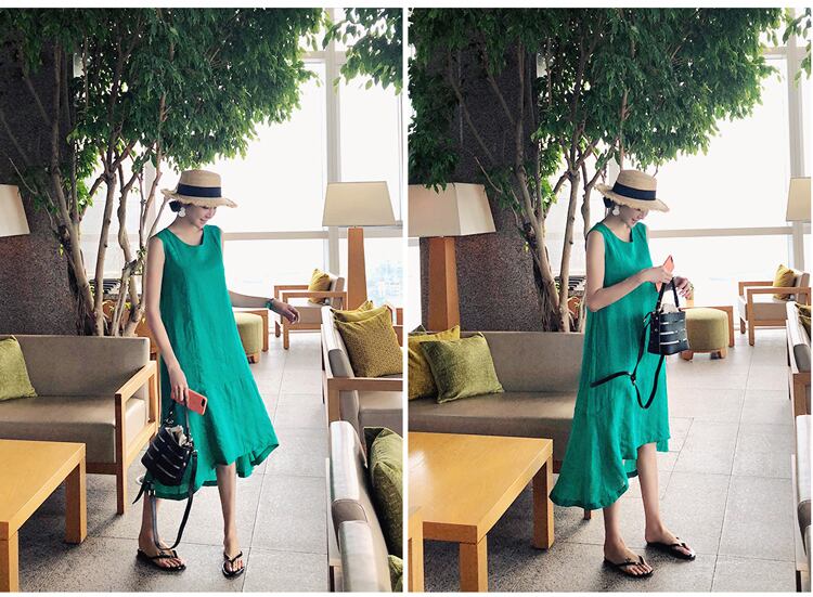 ワンピース シャツワンピース フレアワンピース マキシ マキシ丈 袖なし ノースリーブ Uネック ストレート 透け感 シースルー 綿 かわいい 大人可愛い きれいめ シンプル カジュアル 大人 上品 おしゃれ 無地 夏 10代 20代 30代 リゾート 旅行 海 プール 体系カバー S M L XL 緑 グリーン