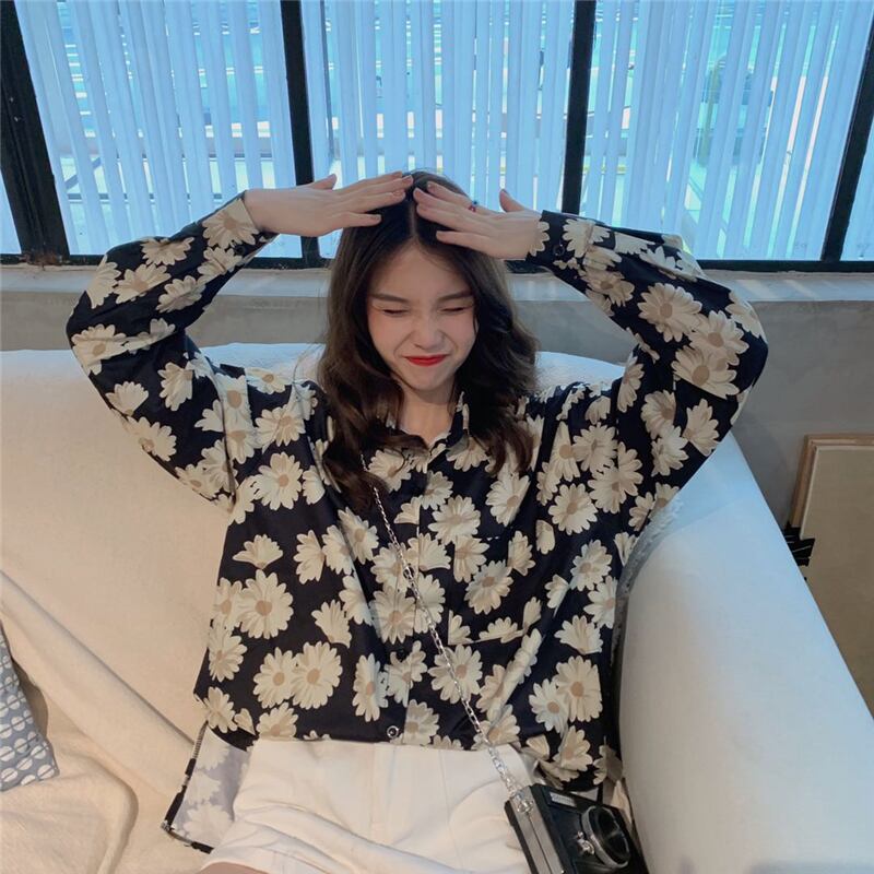 トップス シャツ ブラウス 袖あり 長袖 襟付き ポリエステル 薄手 かわいい シンプル カジュアル おしゃれ お洒落 かっこいい レトロ こなれ感 ラフ メンズライク マニッシュ ボーイッシュ 柄 花柄 フラワー 春 夏 10代 20代 レディース サイズ M フリーサイズ