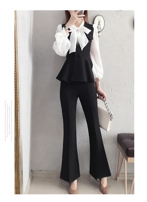 トップス ボトムス セットアップ ブラウス ワイドパンツ リボン スカーフ シルクスカーフ 上下セット 2点セット かわいい 大人可愛い きれいめ シンプル 上品 おしゃれ 無地 春 秋 10代 20代 30代 レディース オフィス ビジネス OL 通勤 着回し 普段使い 重ね着 S M L XL 2XL 黒 ブラック