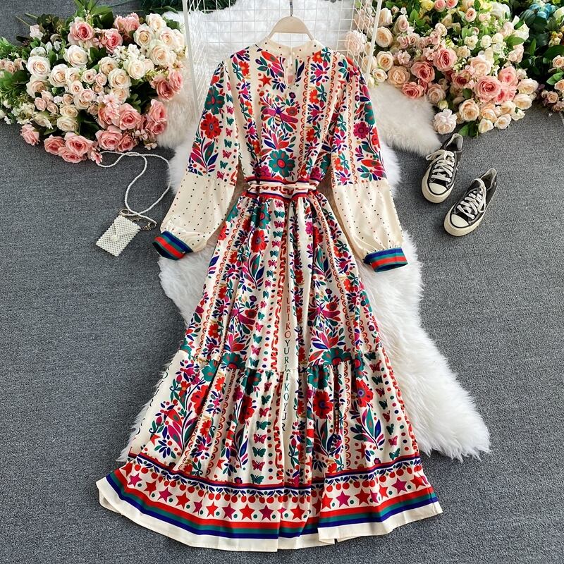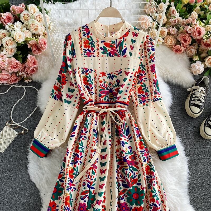 ワンピース ロング ロング丈 袖あり 長袖 ラウンドネック きれいめ 大人 上品 おしゃれ お洒落 かっこいい レトロ 大人女子 こなれ感 モダン 主役級 存在感 フォーマル 抜け感 オールマッチ ハイエンド ニッチ 高級感 シック 花柄 小花柄 フラワー 秋 ディナー コンサート 鑑賞会 20代 30代 40代 レディース 女性用 ママ OL デート お出かけ 女子会 休日 ホテル ガーデン レストラン 普段使い ファッション スタイル 楽ちん モテ 激安 安い インスタ映え 色展開 白 ホワイト 黒
