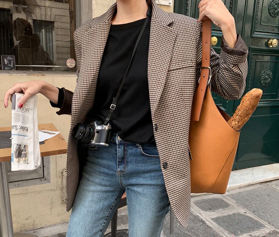 レトロな雰囲気漂うチェック柄のジャケットは