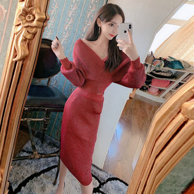 ニットワンピース ワンピース ミニ丈 膝上 袖あり 長袖 萌袖 Vネック カシュクール ニット かわいい 大人可愛い きれいめ シンプル 上品 おしゃれ お洒落 大人可愛い 大人女子 無地 秋 冬 パーティー イベント 旅行 サイズ M フリーサイズ 白 ホワイト 赤 レッド 青 ブルー 灰色 グレー