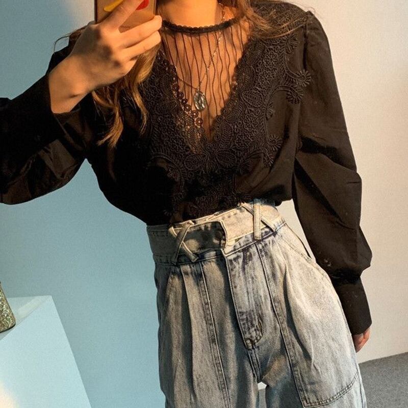 レトロなレースや透け感が可愛らしいブラウスです♪