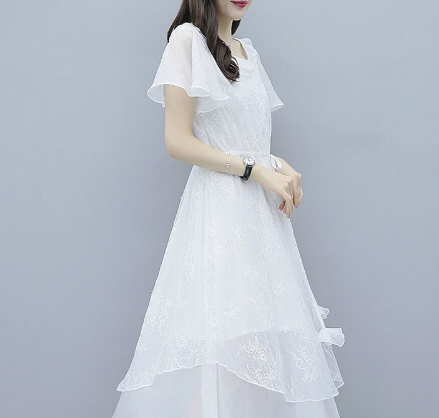 ワンピース ミモレ ミモレ丈 袖あり 半袖 ラウンドネック 襟付き Aライン レース フリル リボン ウエストマーク ウエストリボン ハイウエスト 薄手 かわいい 大人可愛い きれいめ シンプル カジュアル 大人 上品 おしゃれ お洒落 大人可愛い 大人女子 こなれ感 ラフ ガーリー ルーズ 個性的 主役級 存在感 とろみ感 抜け感 柄 夏 誕生日 10代 20代 30代 40代 50代 60代 レディース 女性用 ママ マタニティ オフィス ビジネス OL 通勤 学生 通学 デート お出かけ