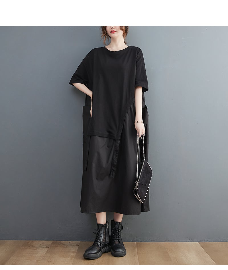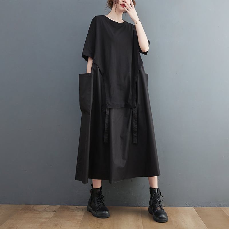 ワンピース プルオーバー ロング ロング丈 袖あり 半袖 5分袖 五分袖 ラウンドネック 襟なし ワイド かわいい 大人可愛い きれいめ シンプル カジュアル 大人 上品 おしゃれ お洒落 大人可愛い 大人女子 こなれ感 ラフ 個性的 クール モード系 モダン 主役級 存在感 無地 夏 30代 レディース 女性用 デート お出かけ 女子会 お泊まり 休日 リゾート 旅行 コーデ スタイル 楽ちん モテ 体系カバー サイズ L XL 大きいサイズ 大きい 大きめ ゆったり ゆる 色展開 黒 ブラック