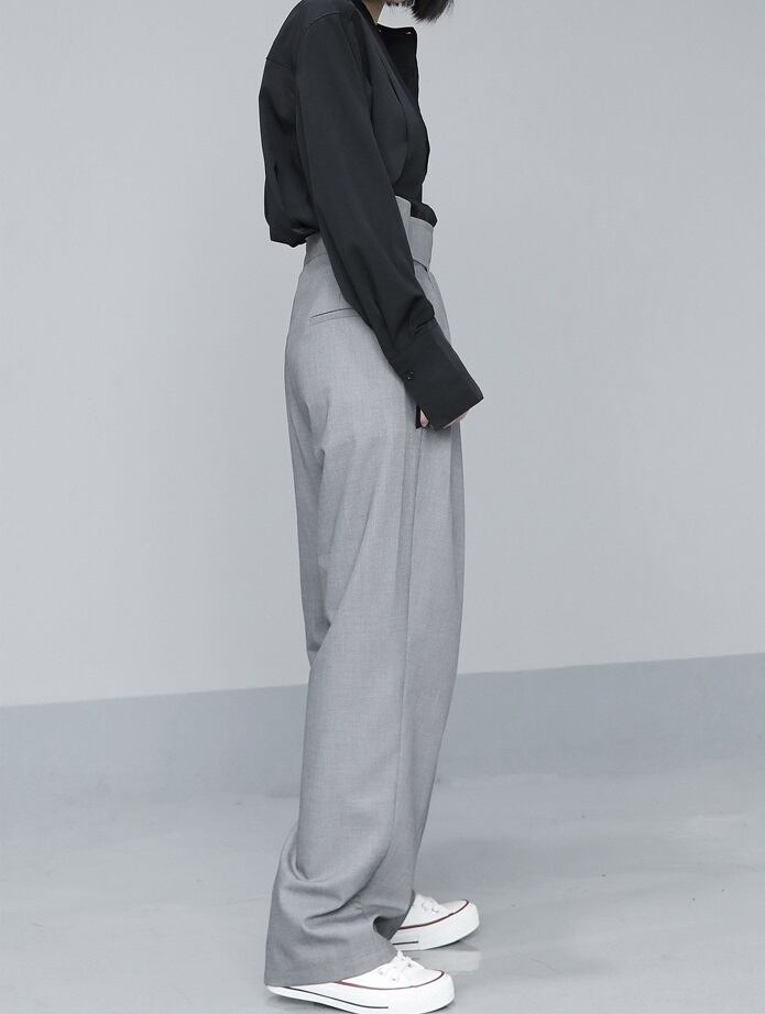 タック入りできちんと見えなワイドパンツ。