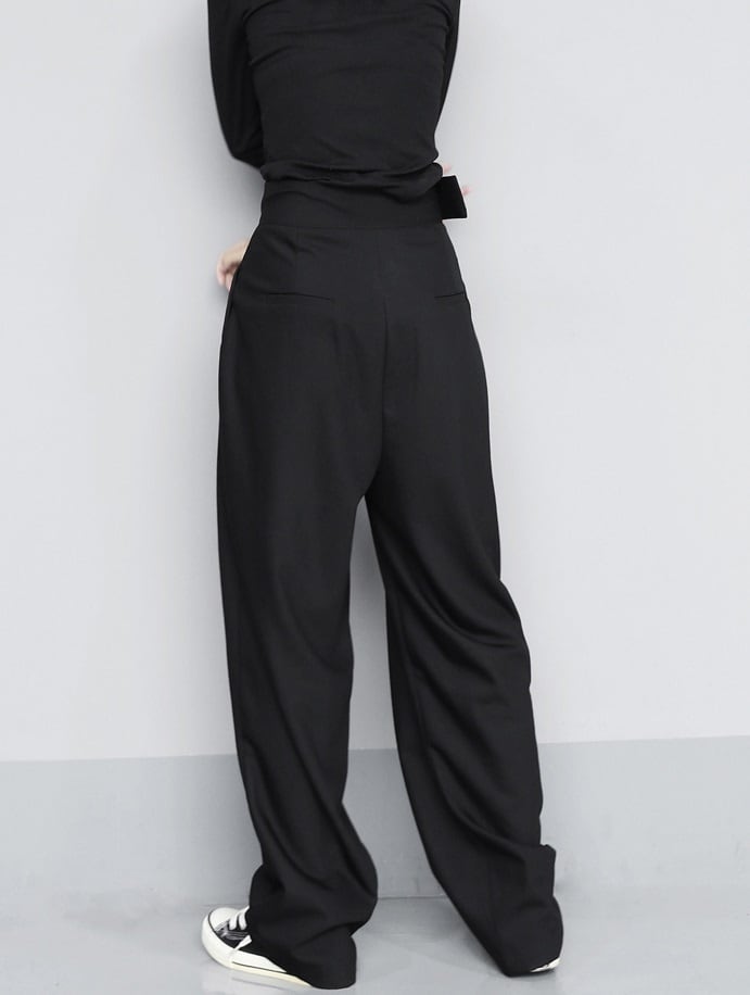 2タイプ タック入り ベルクロ ハイウエスト ワイドパンツ ボトムス パンツ ズボン スーツ ロング ロング丈 ストレート ワイド ベルト ポケット ポリエステル シンプル カジュアル 大人 おしゃれ お洒落 かっこいい こなれ感 マニッシュ ルーズ クール モード系 無地 春 夏 秋 冬 10代 20代 レディース 通勤 学生 通学 デート お出かけ 女子会 休日 旅行 着回し 普段使い 韓国 韓国系 楽ちん 脚長 ゆったり 大きいサイズ S M L XL 2XL 色展開 黒 ブラック 灰色 グレー