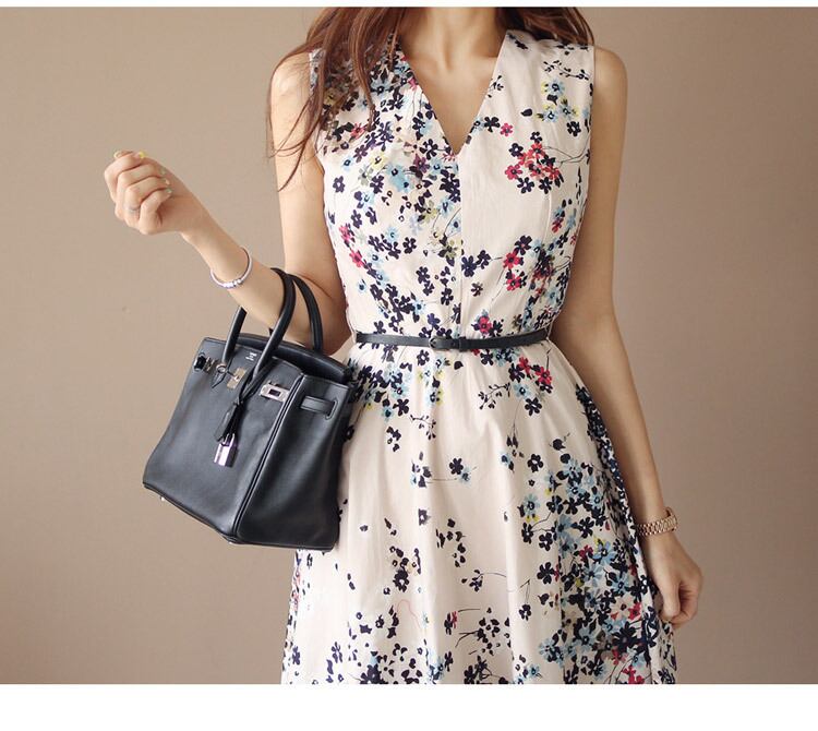 夏韓国スタイル女性エレガント V ネックウエストミッドレングス花スイングファッションドレス ワンピース フレアワンピース 膝丈 膝下 ノースリーブ Vネック Aライン シフォン ベルト ウエストマーク ハイウエスト 大人可愛い きれいめ シンプル カジュアル 大人 お洒落 大人女子 こなれ感 ラフ キュート ガーリー セクシー 花柄 小花柄 春 夏 10代 20代 30代 レディース OL 通勤 学生 通学 デート お出かけ 女子会 お泊まり 休日 着回し 普段使い 重ね着 S M L XL ホワイト