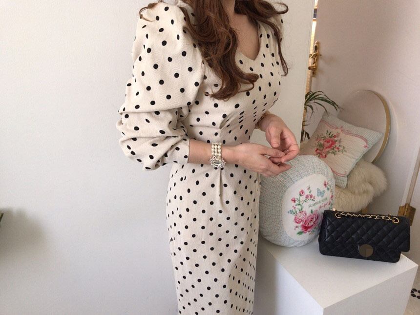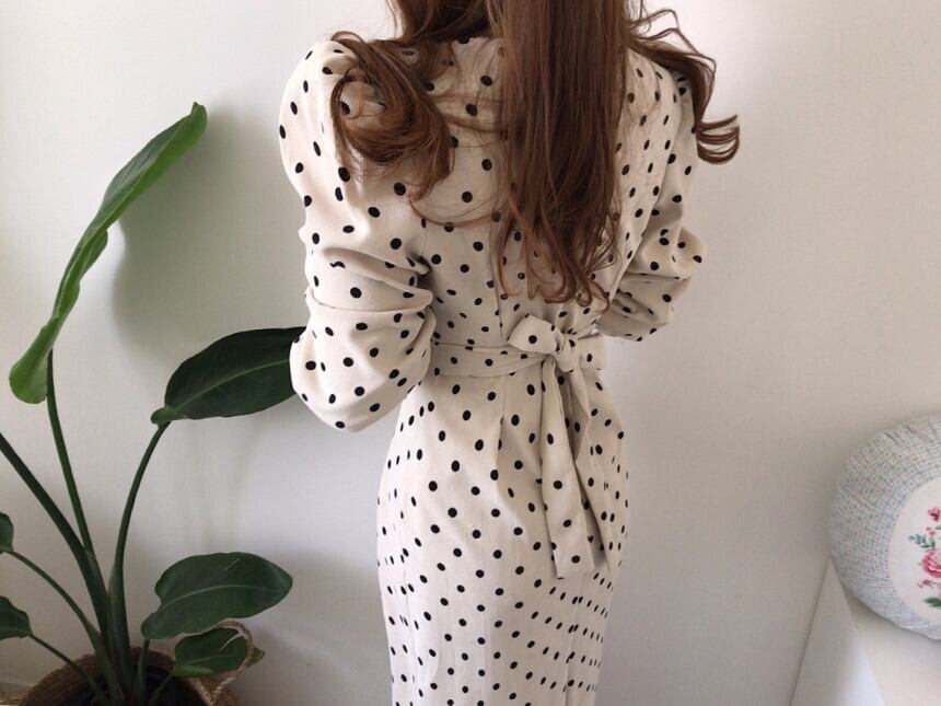 ワンピース ドレス レディース ロングスカート ミドル丈スカート 蝶ネクタイ ウエストスリム コーデュロイドレス エレガント Vネック プルオーバー ハイウエスト 着回し 普段使い 重ね着 韓国 オルチャン ファッション コーデ スタイル パーティー オフィス ビジネス OL 通勤 学生 通学 デート 女子会 お泊まり 休日 披露宴 かわいい 大人可愛い きれいめ 大人 上品 おしゃれ お洒落 ギフト プレゼント インスタ映え モテ ママ ドット柄 水玉 アプリコット ブラウン 春 夏 秋 冬 S M L