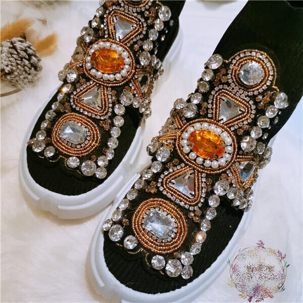 シューズ 靴 くつ クツ スニーカー 厚底 ローヒール フラット ハイカット 刺繍 痛くない 歩きやすい 履きやすい 疲れにくい ビジュー キラキラ ラインストーン かわいい カジュアル おしゃれ お洒落 かっこいい レトロ エレガント ラブリー メンズライク マニッシュ ボーイッシュ ラフ ルーズ 個性的 クール モード系 モダン 存在感 派手 オールシーズン ライブ フェス レディース 女性用 お出かけ 休日 イベント 22.5cm 23.0cm 23.5cm 24.0cm 24.5cm 黒 ブラック