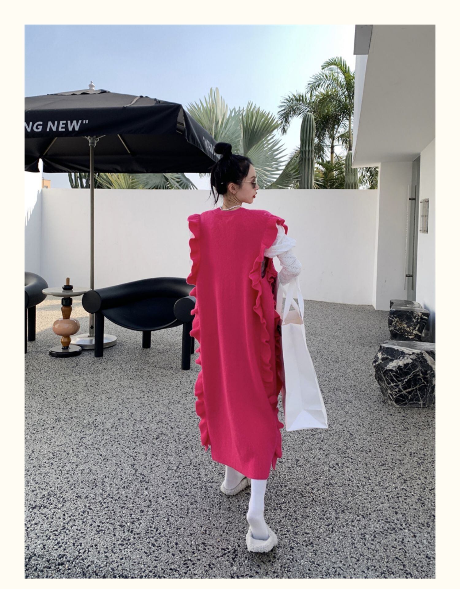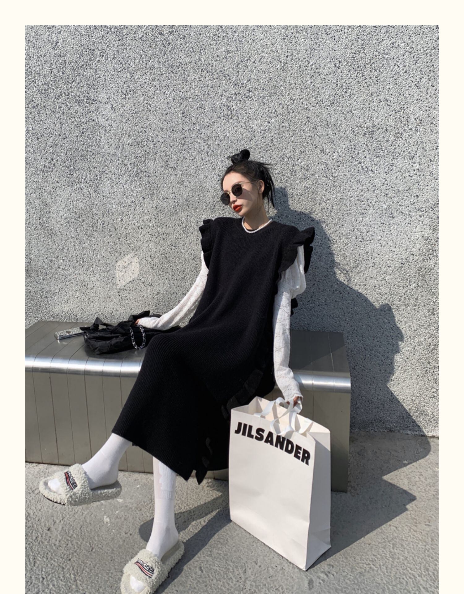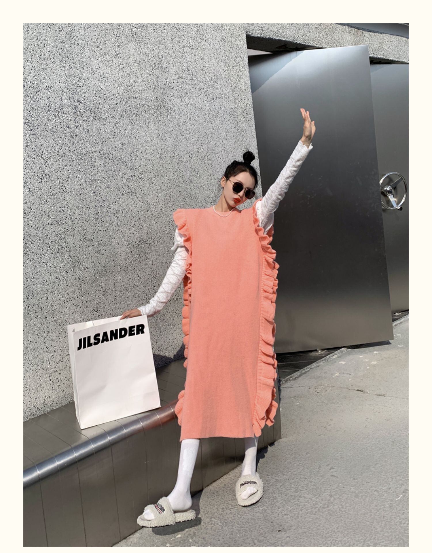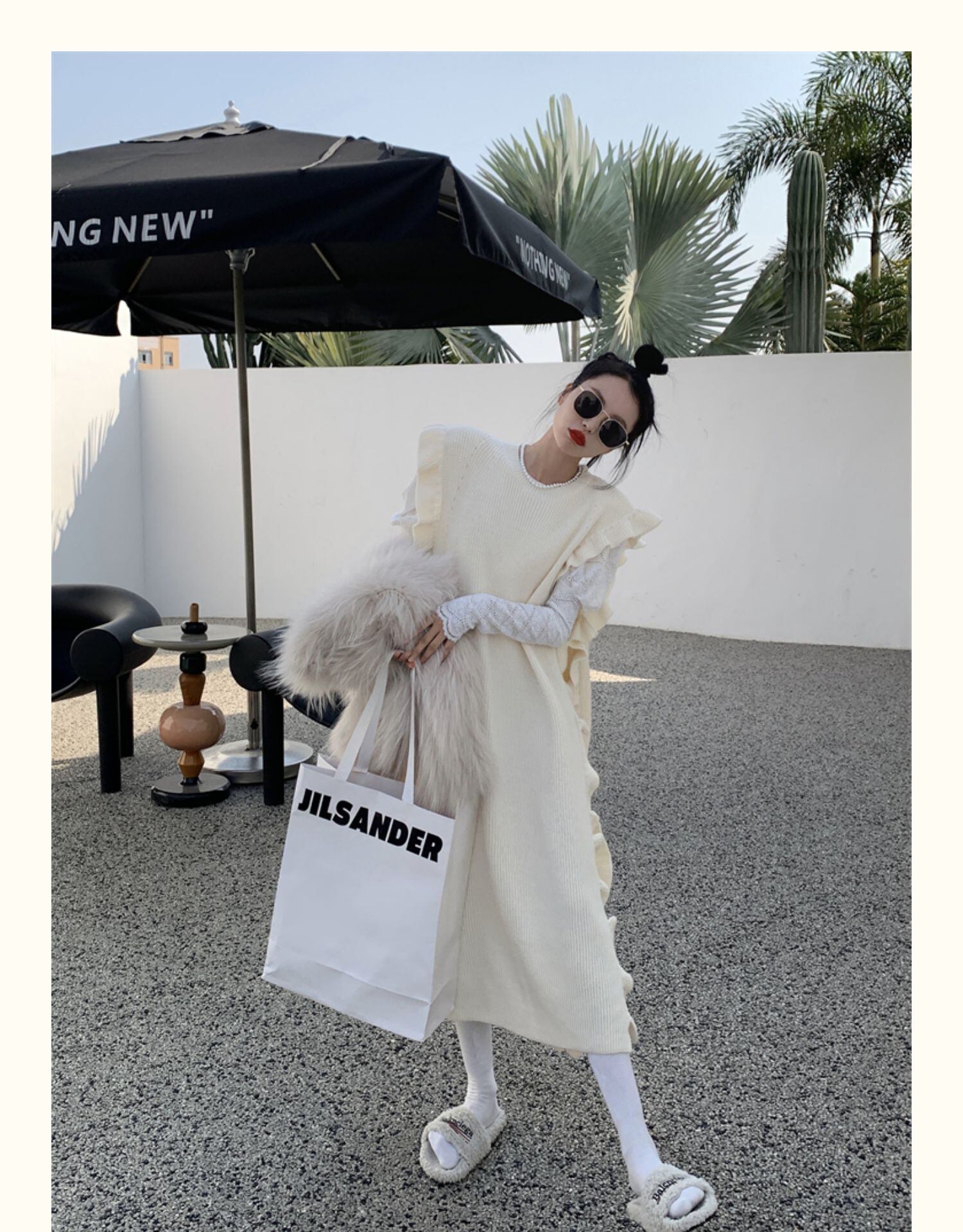 ワンピース ニット ロングスカート ニットスカート ロング丈 袖なし ノースリーブ ラウンドネック ストレート フリル かわいい 大人可愛い きれいめ カジュアル 大人 上品 おしゃれ お洒落 メンズライク ガーリー こなれ感 無地 春 秋 10代 20代 30代 レディース デート お出かけ ファッション モテ フリーサイズ 色展開 ホワイト ブラック グリーン ピンク