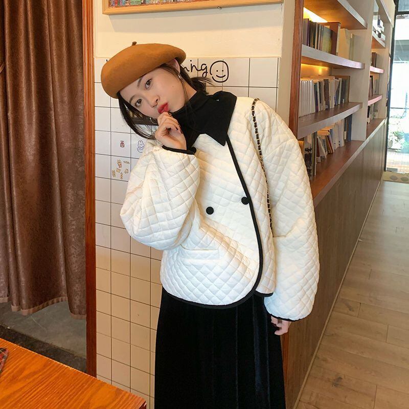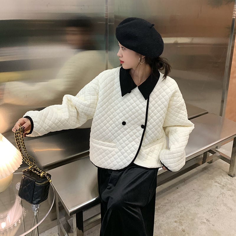 ドールカラー キルティング ショートコート アウター コート ジャケット 上着 ショート ショート丈 袖あり 長袖 襟付き 前開き 中綿 かわいい 大人可愛い きれいめ シンプル カジュアル 大人 上品 おしゃれ お洒落 大人女子 キュート ガーリー 無地 春 秋 冬 10代 20代 レディース 通勤 学生 通学 デート お出かけ 女子会 休日 旅行 着回し 普段使い 重ね着 韓国 韓国系 オルチャン 暖かい サイズ S M L 色展開 白 ホワイト 黒 ブラック