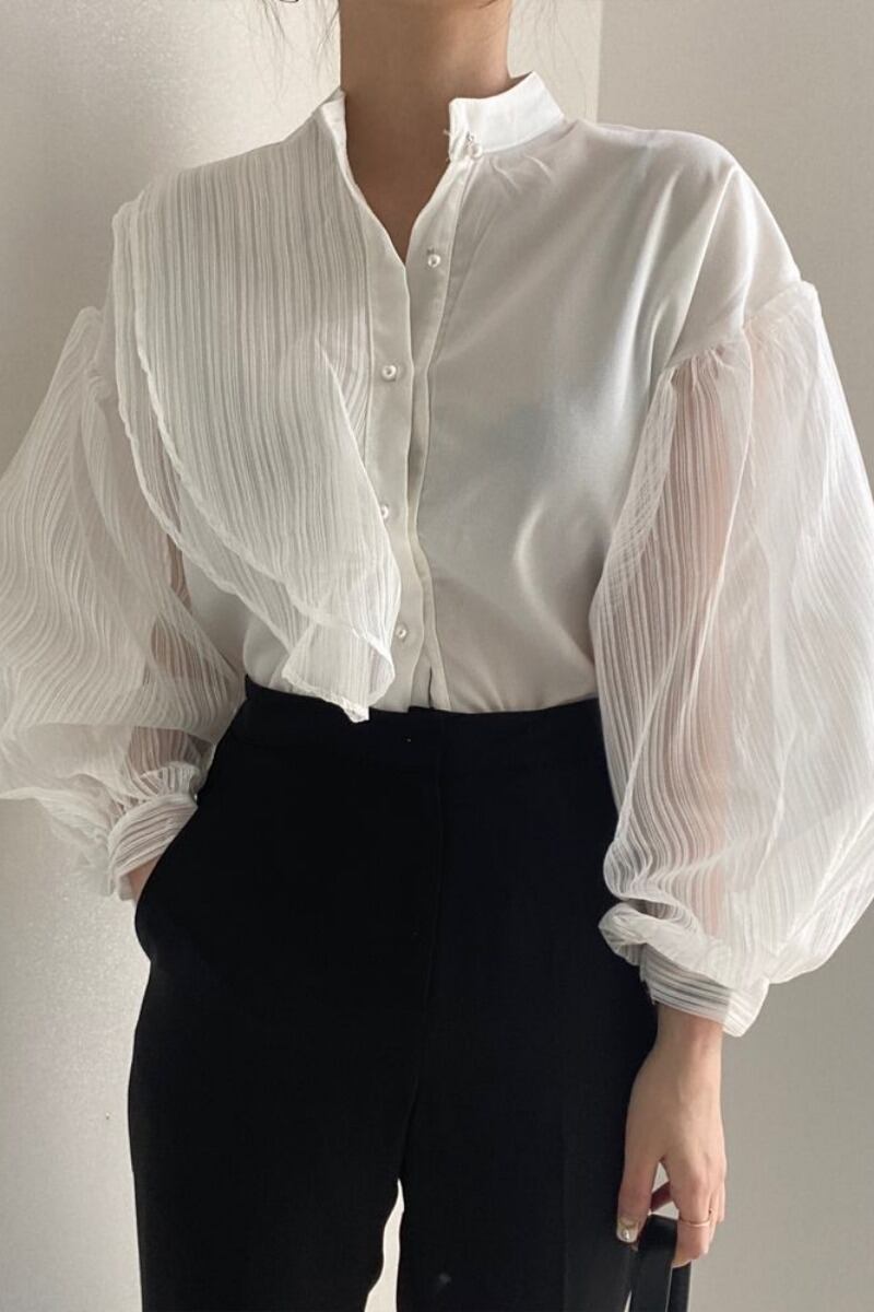 トップス シャツ レディース ボタン 長袖 シングルブレスト スタンドカラーシャツ シースルー スタンドカラー ストレート かわいい 大人可愛い きれいめ シンプル カジュアル 大人 上品 おしゃれ お洒落 かっこいい レトロ こなれ感 メンズライク ルーズ 個性的 クール モード系 セクシー エレガント モダン 主役級 存在感 フォーマル とろみ感 抜け感 10代 20代 30代 40代 50代 60代 オフィス ビジネス OL 通勤 学生 通学 デート ホワイト ブラック 春 夏 秋 冬 フリーサイズ