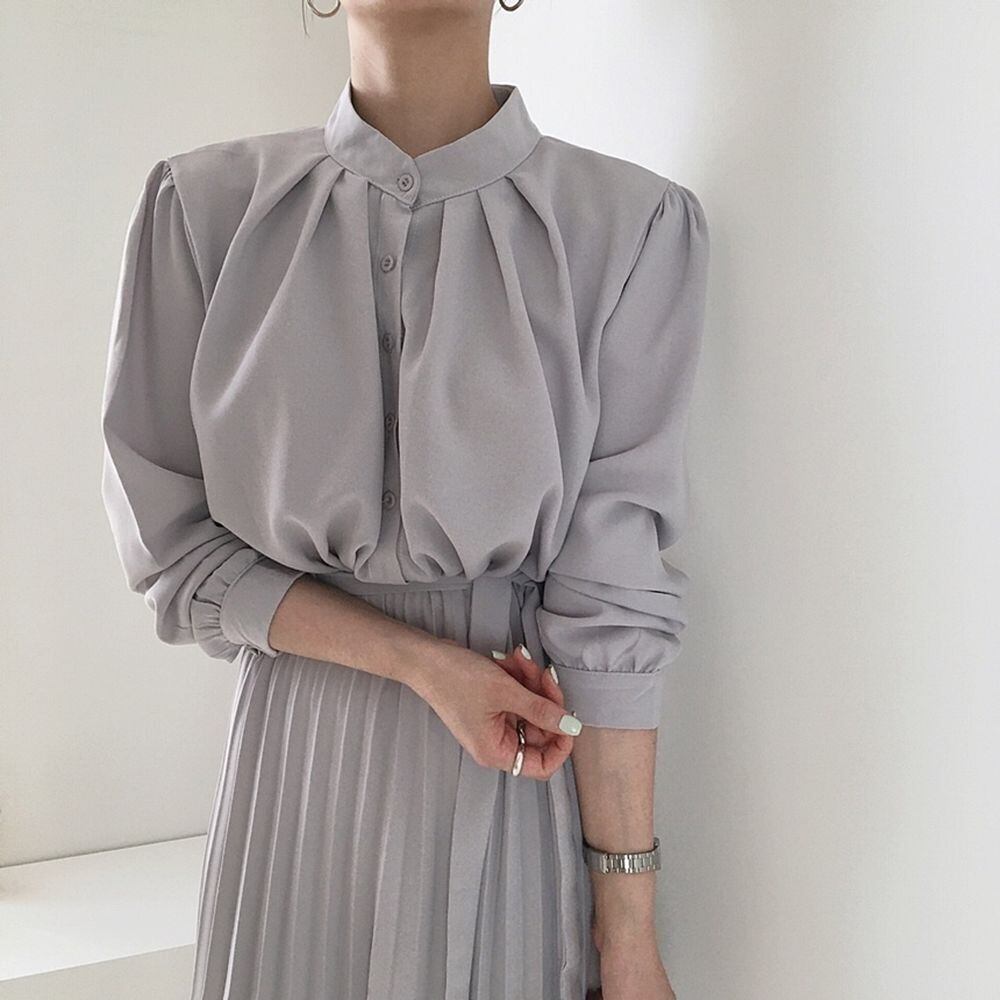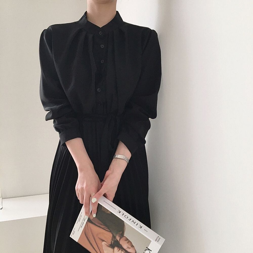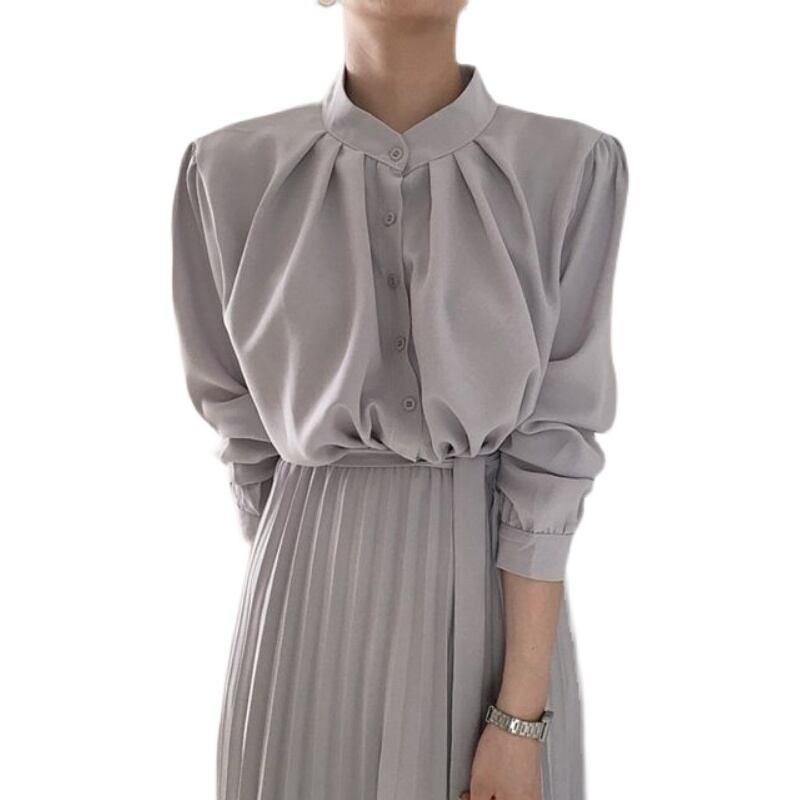 ワンピース レディース シャツ スカート ロングワンピース ロングスカート プリーツ スタンドカラー ハイウエスト シングルブレスト ボタン かわいい 大人可愛い きれいめ シンプル 大人 上品 おしゃれ お洒落 かっこいい レトロ ルーズ 個性的 クール モード系 セクシー エレガント 主役級 存在感 フォーマル とろみ感 抜け感 オフィス ビジネス OL 通勤 学生 通学 デート お出かけ 休日 入学式 入園式 卒業式 卒園式 謝恩会 パーティー ギフト グレー ブラック 春 夏 秋 冬 フリーサイズ