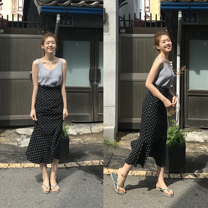 スカート ボトムス ミモレ ミモレ丈 マーメイド フリル 切り替えデザイン 薄手 かわいい 大人可愛い きれいめ シンプル カジュアル 大人 上品 おしゃれ お洒落 レトロ 大人可愛い 大人女子 こなれ感 ラフ ルーズ 個性的 主役級 存在感 とろみ感 抜け感 柄 ドット柄 水玉 春 夏 誕生日 10代 20代 30代 40代 50代 60代 レディース 女性用 ママ マタニティ オフィス ビジネス OL 通勤 学生 通学 デート お出かけ 公園デビュー 女子会 お泊まり 休日 イベント