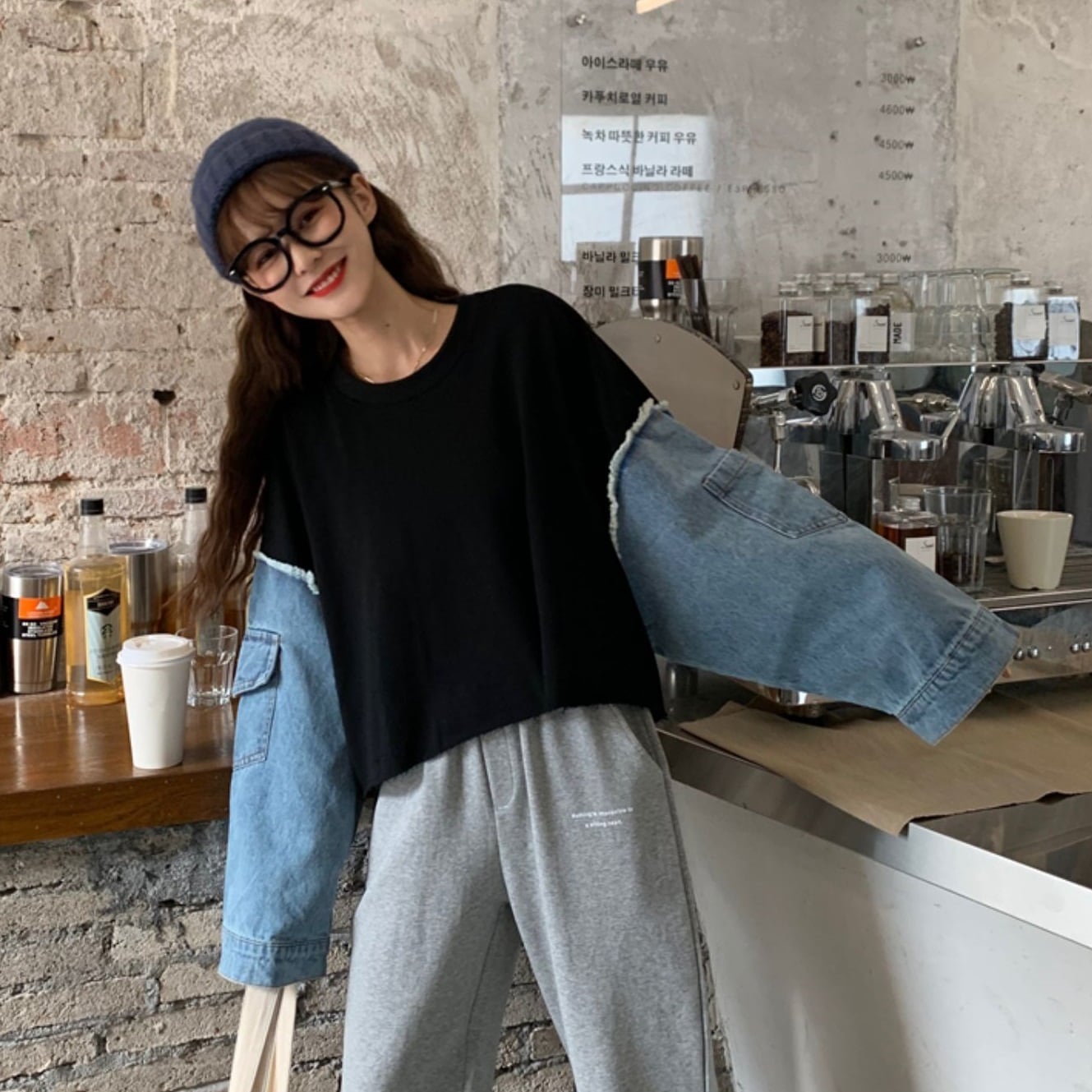 ハイセンスなデニムとロンTの異素材MIXトップス。