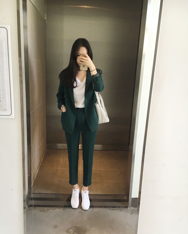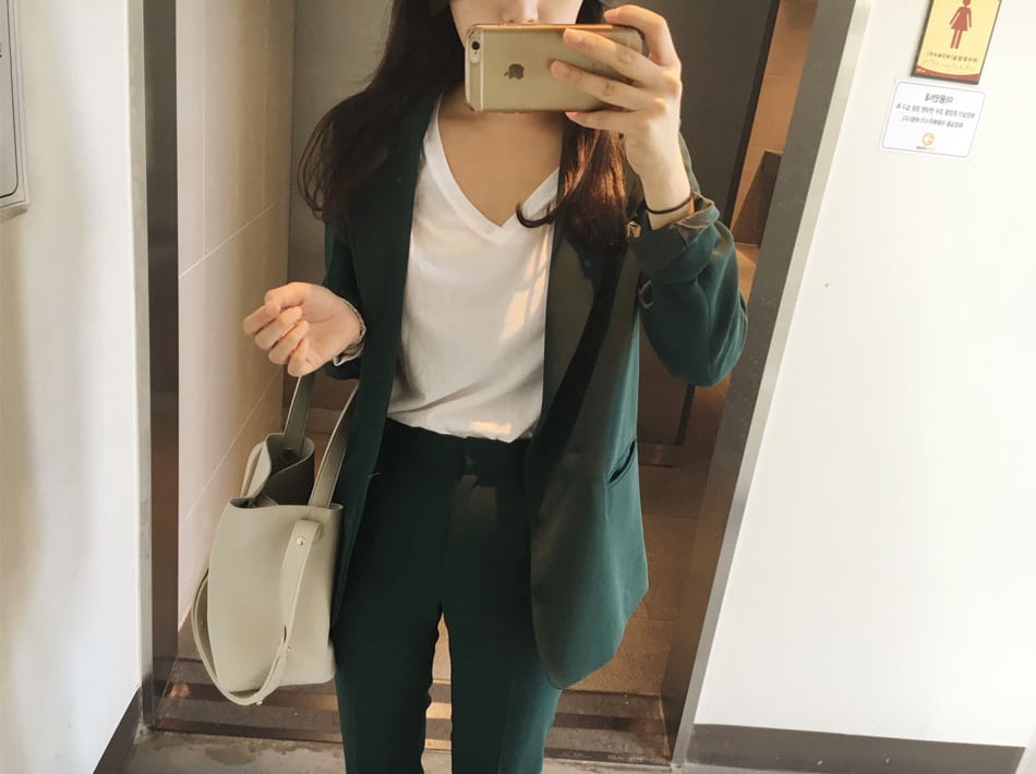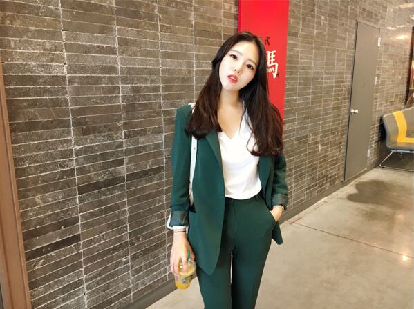 ボトムス アウター セットアップ ジャケット スーツ クロップドパンツ アンクル丈 袖あり 長袖 襟付き 綿 上下セット 2点セット かわいい 大人可愛い きれいめ シンプル カジュアル 上品 おしゃれ お洒落 大人女子 無地 春 10代 20代 オフィス ビジネス OL 通勤 S M L XL 緑 グリーン