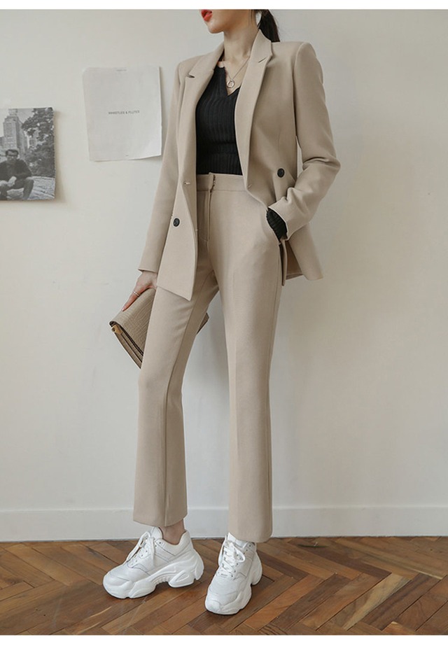 ボトムス アウター ジャケット スーツ ストレートパンツ 袖あり 長袖 襟付き 細身 ストレート ポリエステル 上下セット 2点セット 大人可愛い きれいめ シンプル 大人 上品 おしゃれ 大人可愛い 大人女子 無地 春 秋 10代 20代 レディース オルチャン ファッション コーデ S M L XL 白 ホワイト 黒 ブラック ベージュ ピンク