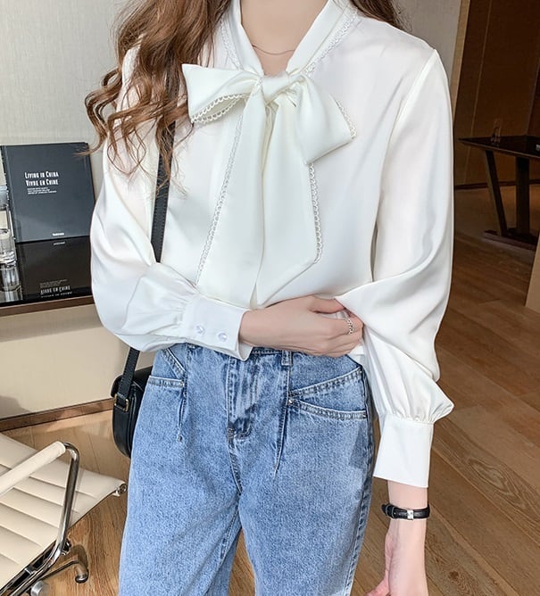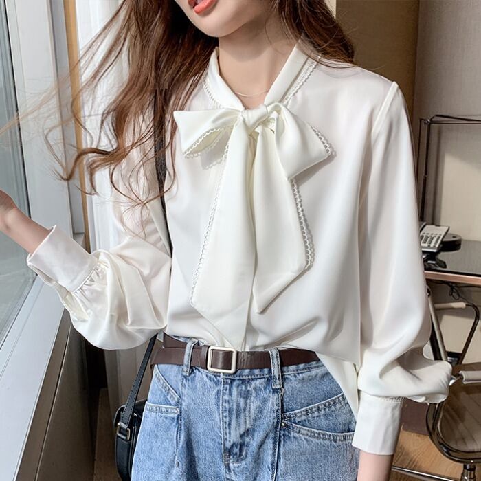 トップス シャツ ブラウス 白シャツ 白トップス ショート ショート丈 袖あり 長袖 リボン かわいい 大人可愛い きれいめ シンプル カジュアル 大人 上品 おしゃれ お洒落 かっこいい レトロ 大人女子 こなれ感 ラフ マニッシュ 個性的 クール 主役級 存在感 抜け感 フェミニン 大人カジュアル オフィスカジュアル オフィカジ 無地 春 秋 冬 10代 20代 30代 40代 レディース 女性用 ママ オフィス ビジネス OL 通勤 学生 通学 デート お出かけ 女子会 休日 旅行