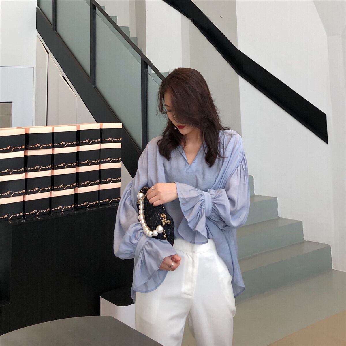 トップス シャツ 袖あり 長袖 ポリエステル繊維 きれいめ シンプル カジュアル 大人 上品 おしゃれ お洒落 かっこいい 大人女子 こなれ感 ラフ モダン 主役級 存在感 抜け感 ヨーロピアン オールマッチ ハイエンド ニッチ 高級感 シック 無地 秋 2019 ランチ カフェ 図書館 10代 20代 30代 レディース 女性用 ママ オフィス ビジネス OL 通勤 デート お出かけ 公園デビュー 女子会 休日 イベント 着回し 普段使い 韓国 韓国系 ファッション コーデ スタイル 楽ちん モテ 青