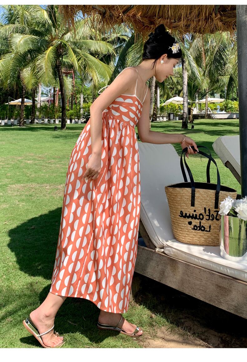 ワンピース キャミソール フレアワンピース ロング ロング丈 袖なし ノースリーブ スクエアネック 綿 薄手 かわいい 大人可愛い シンプル カジュアル おしゃれ お洒落 アジアン 大人可愛い 大人女子 こなれ感 ドット柄 水玉 夏 10代 20代 レディース イベント リゾート 旅行 海 プール S M L XL