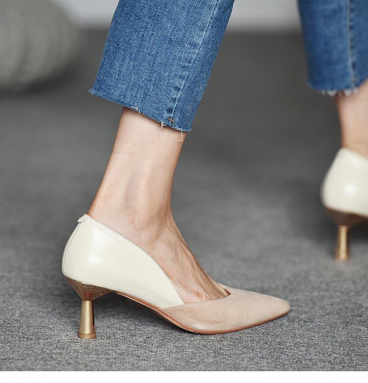 ヌードカラーのバイカラーがおしゃれなハイヒール。ヒール部分がゴールドなのもアクセント。大人かっこいいおしゃれなアイテムです。