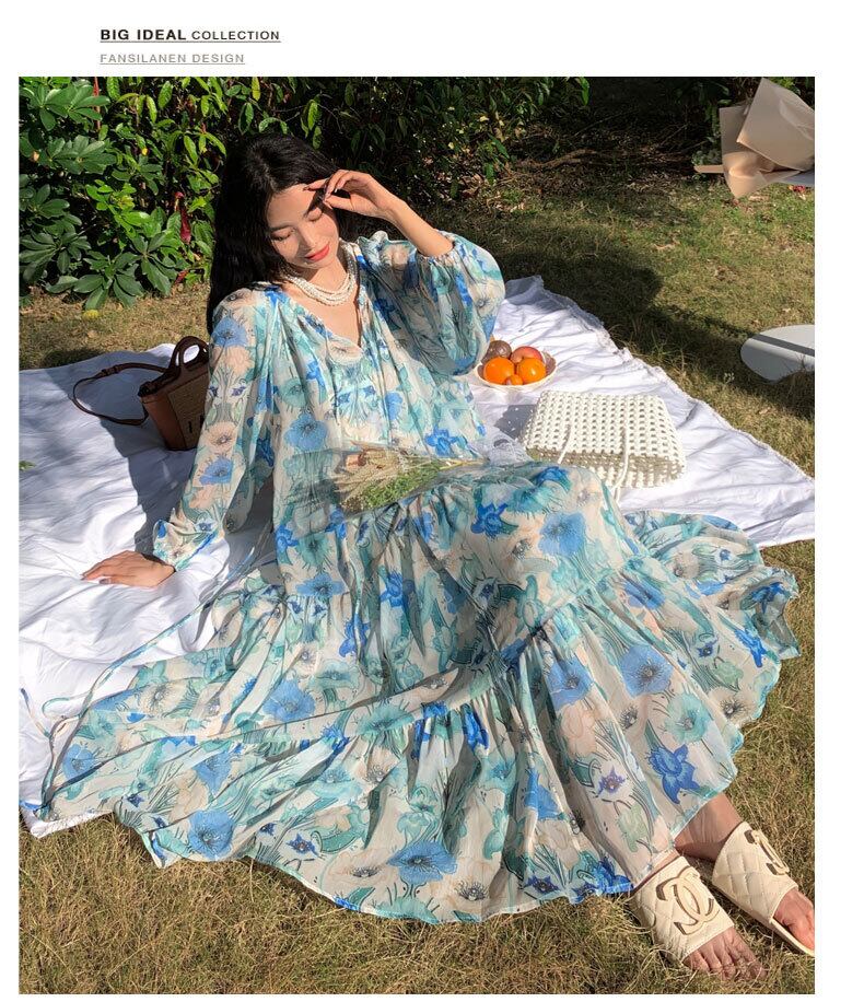 花柄フレアワンピース フレアワンピース ロング ロング丈 長袖 フレアスリーブ Vネック フレア ワイド シフォン フリル 透け感 シースルー ポリエステル かわいい 大人可愛い きれいめ 上品 おしゃれ キュート ガーリー 柄 花柄 小花柄 フラワー 春 夏 10代 20代 レディース S M L XL