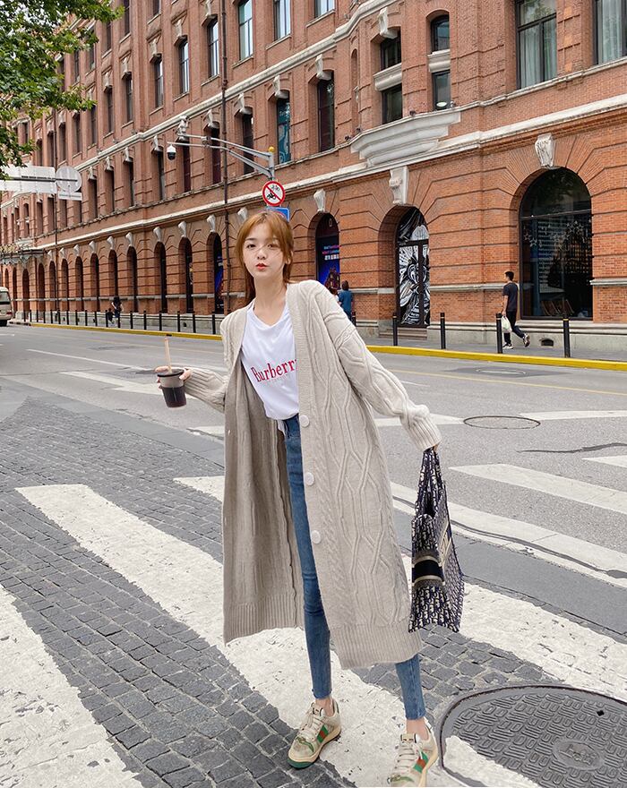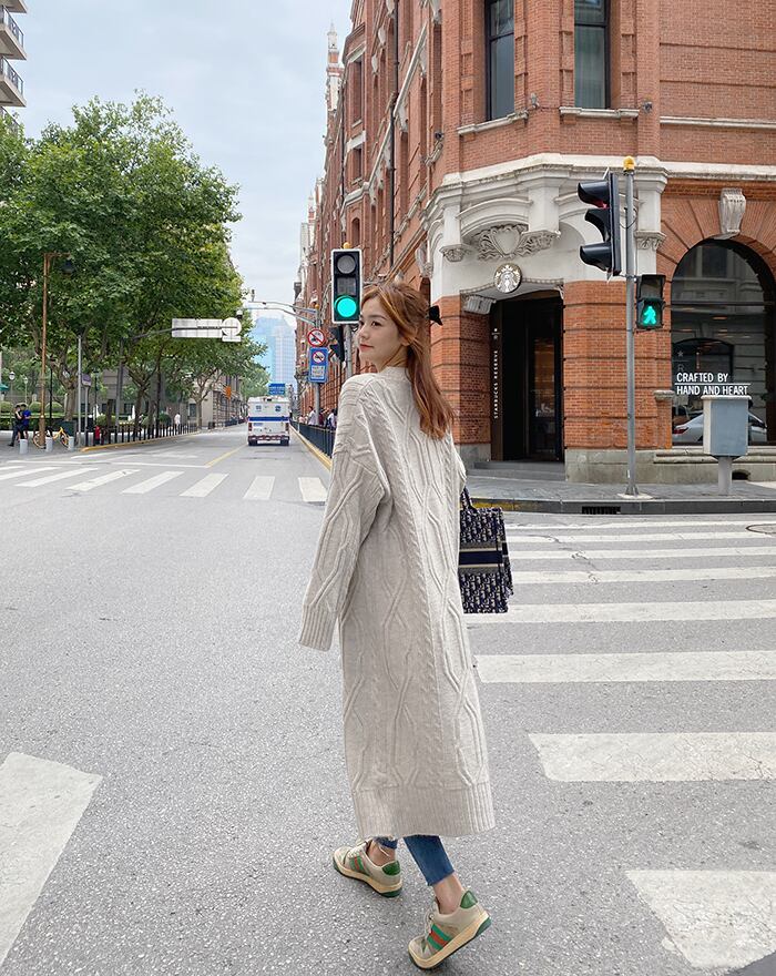 アウター ニット カーディガン コート ロングコート ロング丈 袖あり 長袖 Vネック ストレート ニット かわいい 大人可愛い シンプル カジュアル おしゃれ お洒落 レトロ メンズライク ガーリー ツイスト編み 春 秋 冬 10代 20代 30代 レディース デート お出かけ ファッション モテ フリーサイズ 色展開 ブラック グレー