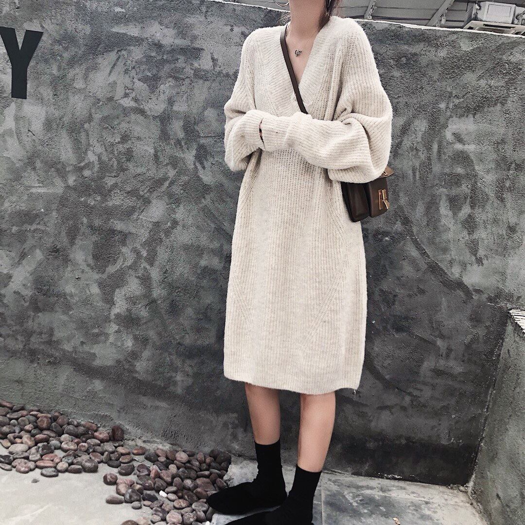 ワンピース ニット セーター ロングスカート ロング丈 袖あり 長袖 Vネック ストレート ニット かわいい 大人可愛い シンプル おしゃれ お洒落 メンズライク ガーリー 無地 春 秋 冬 10代 20代 レディース デート お出かけ ファッション モテ サイズ S M L XL ゆったり ゆる ブラック オフホワイト