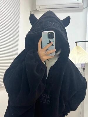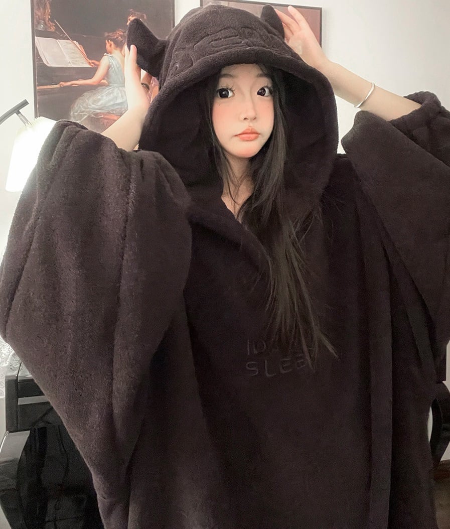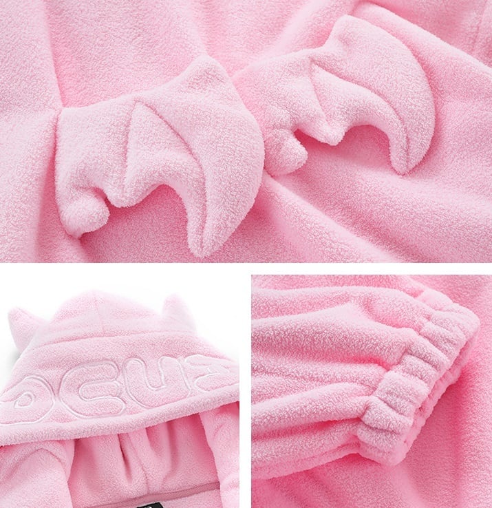 暖かい 小悪魔 フード付き 着ぐるみ ベルベット ワンピース ルームウェア パジャマ 部屋着 寝巻き 着る毛布 ロング ロング丈 袖あり 長袖 ワイド 刺繍 かわいい カジュアル おしゃれ お洒落 ラフ キュート ルーズ 個性的 存在感 柄 ロゴ 英字 春 秋 冬 10代 20代 レディース メンズ ペア 学生 デート お泊まり 休日 旅行 お揃い 双子 韓国 楽ちん 防寒 ゆったり ゆる サイズ M L XL 色展開 黒 ブラック 灰色 グレー ピンク アプリコット