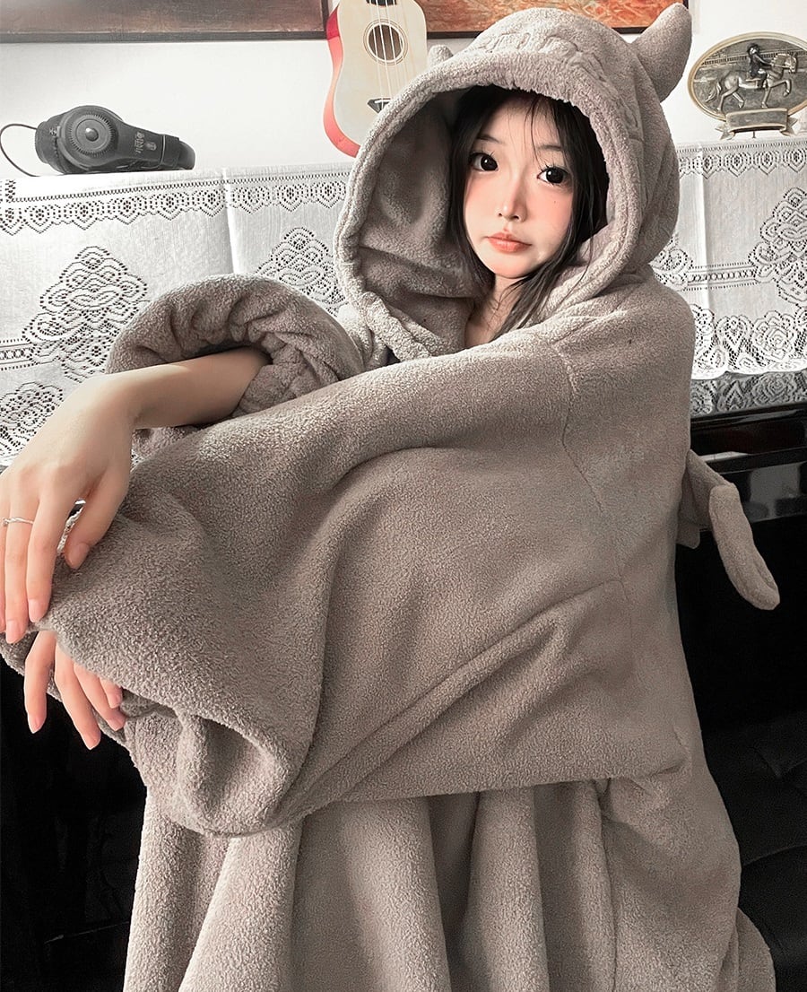 背中には羽根も付いていてかわいいシルエットなり、毛布ように暖かく包み込んでくれるitem。カップルや友達との色ち買いも。