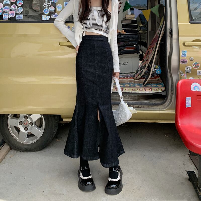 スリット入り ハイウエスト フレア デニム スカート ボトムス ロングスカート フレアスカート デニムスカート 膝下 ミモレ ミモレ丈 ロング ロング丈 スリム タイト 細身 Aライン スリット ファスナー かわいい 大人可愛い シンプル カジュアル 大人 おしゃれ お洒落 大人女子 無地 春 夏 秋 冬 10代 20代 レディース 通勤 学生 通学 デート お出かけ 女子会 休日 旅行 着回し 普段使い 韓国 韓国系 オルチャン サイズ S M L XL 色展開 黒 ブラック