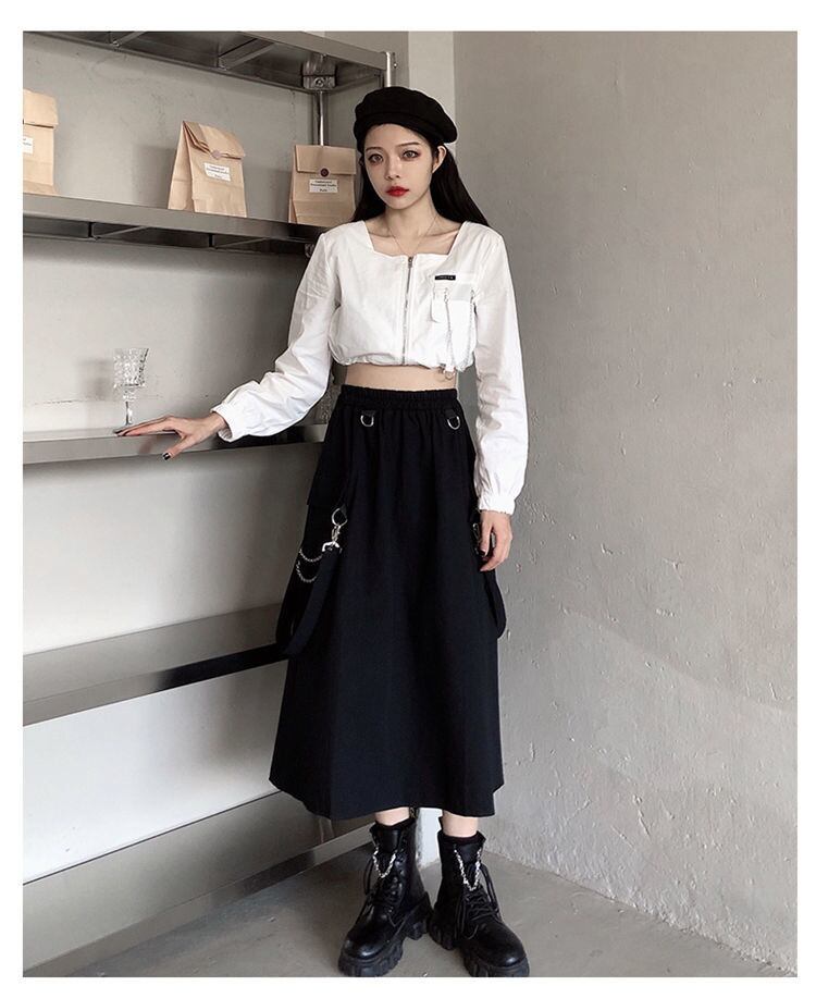 色んなコーデに合わせやすいブラックスカート。