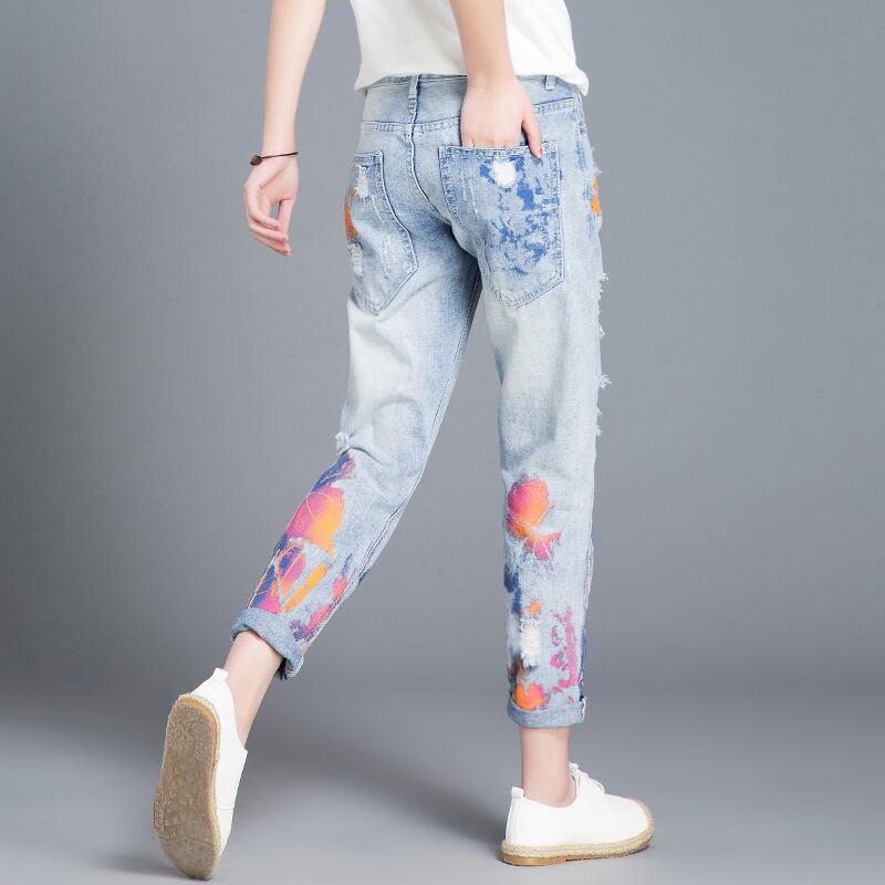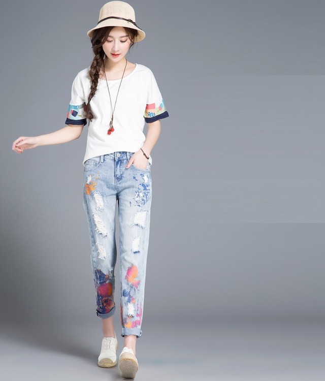 9分丈 プリント柄 ハイウエスト ダメージ デニムパンツ ボトムス パンツ Gパン ズボン ストレートパンツ テーパードパンツ ファスナー デニム ブルーデニム カラーデニム かわいい 大人可愛い カジュアル 大人 おしゃれ お洒落 レトロ 大人女子 こなれ感 ルーズ 個性的 存在感 ペイント 春 夏 秋 10代 20代 レディース 通勤 学生 通学 デート お出かけ 女子会 休日 旅行 着回し 普段使い 大きいサイズ 26 27 28 29 30 31 32 色展開 白 ホワイト 水色 ライトブルー