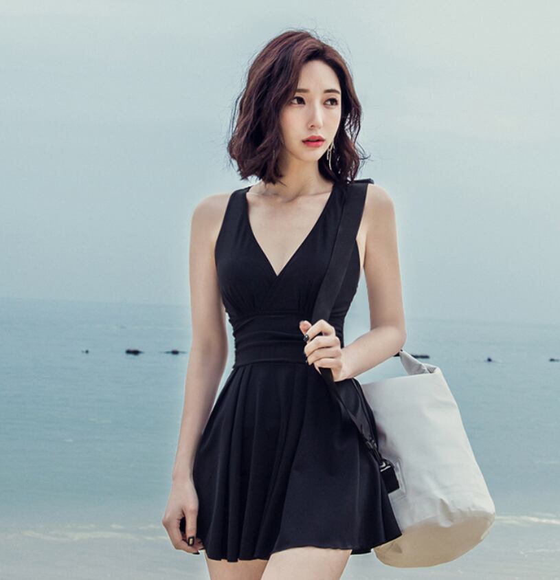 Vネックとホルターネックの2種類から選べるワンピースタイプの水着。ワンピースタイプでお腹周りもすっきりカバー。ふんわりスカートが可愛い大人ガーリーなアイテムです。