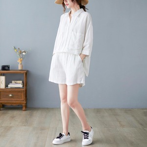 セットアップ ルームウェア パジャマ シャツ ショートパンツ 袖あり 半袖 綿 リネン 薄手 かわいい シンプル カジュアル 無地 春 夏 韓国 韓国系 オルチャン ファッション コーデ 楽ちん XL 2XL 大きいサイズ 大きい 大きめ ビッグサイズ ゆったり ゆる 白 ホワイト 緑 グリーン