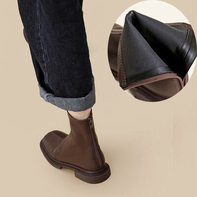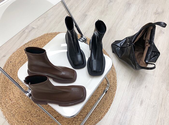 通常と裏ボアから選べる、スクエアトゥのレザーショートブーツ。