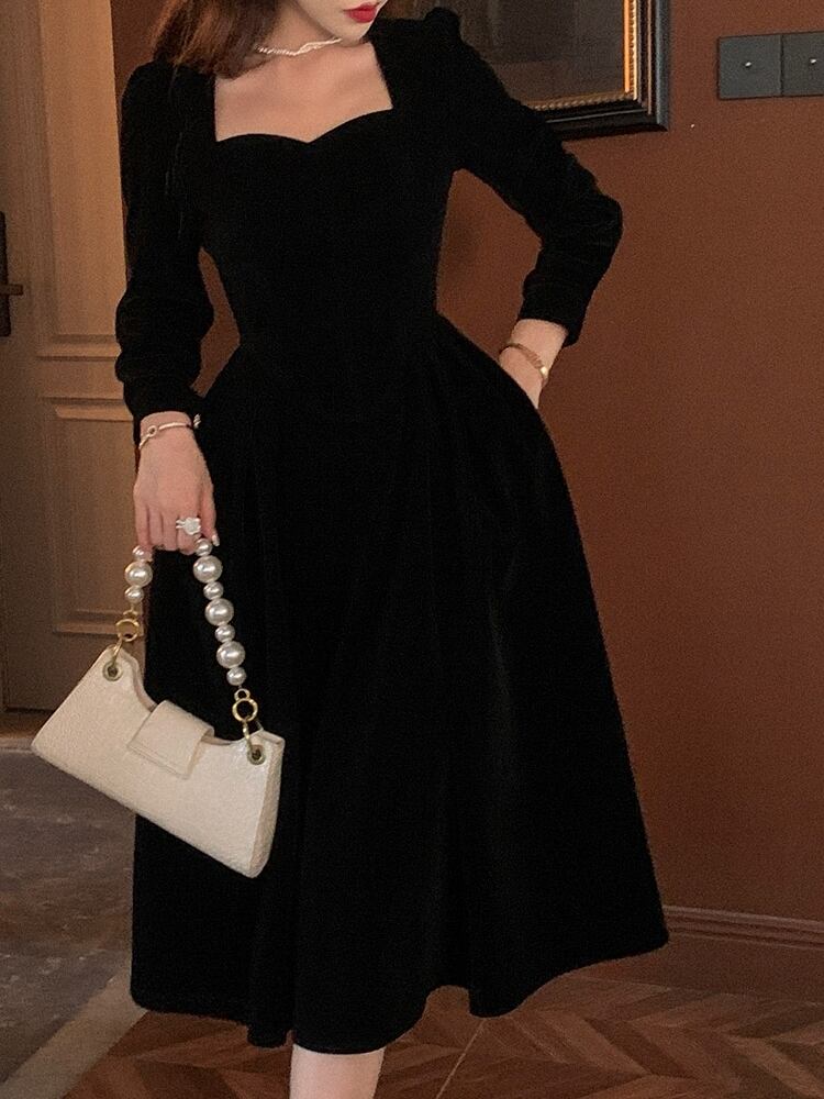 ワンピース 膝下 ミモレ ミモレ丈 ロング ロング丈 袖あり 長袖 スクエアネック フレア かわいい 大人可愛い きれいめ シンプル 大人 上品 おしゃれ お洒落 レトロ こなれ感 ラフ 個性的 エレガント モダン 主役級 存在感 抜け感 フェミニン 大人カジュアル 無地 秋 冬 10代 20代 30代 40代 レディース 女性用 ママ オフィス ビジネス OL 通勤 学生 通学 デート お出かけ 女子会 休日 パーティー イベント 旅行 高原 ホテル ガーデン レストラン デイリー