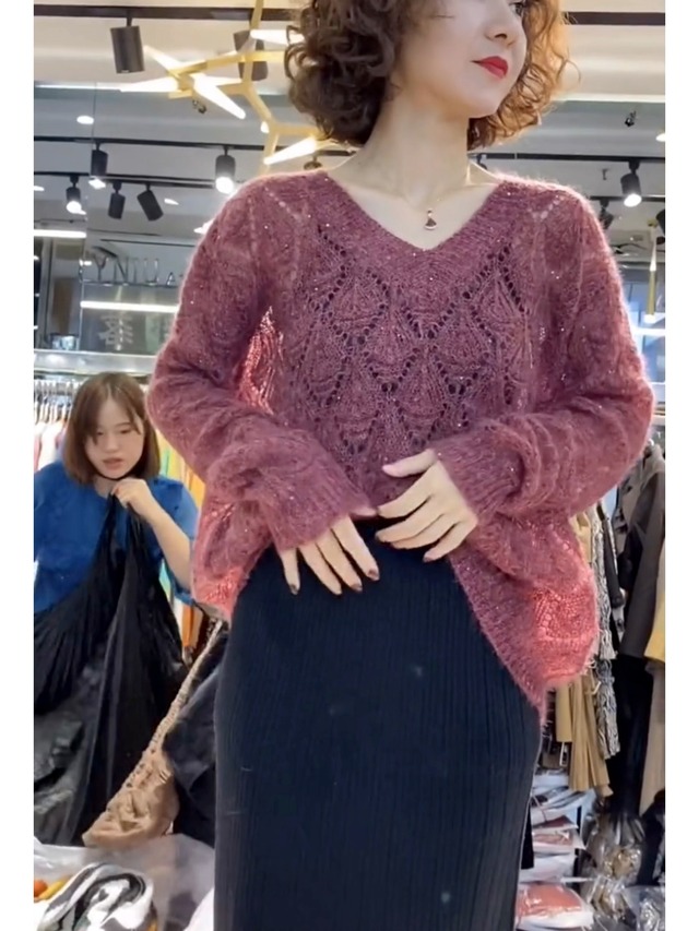 透かし編みニット トップス ニットソー セーター 袖あり 長袖 Vネック かわいい 大人可愛い きれいめ シンプル カジュアル 大人 上品 おしゃれ お洒落 大人可愛い 大人女子 こなれ感 キュート ガーリー エレガント モダン 主役級 存在感 無地 秋 冬 10代 20代 30代 レディース OL 通勤 学生 通学 デート お出かけ 女子会 休日 着回し 普段使い 重ね着 サイズ S M L XL 2XL 色展開 赤 レッド 紫 パープル 黄色 イエロー