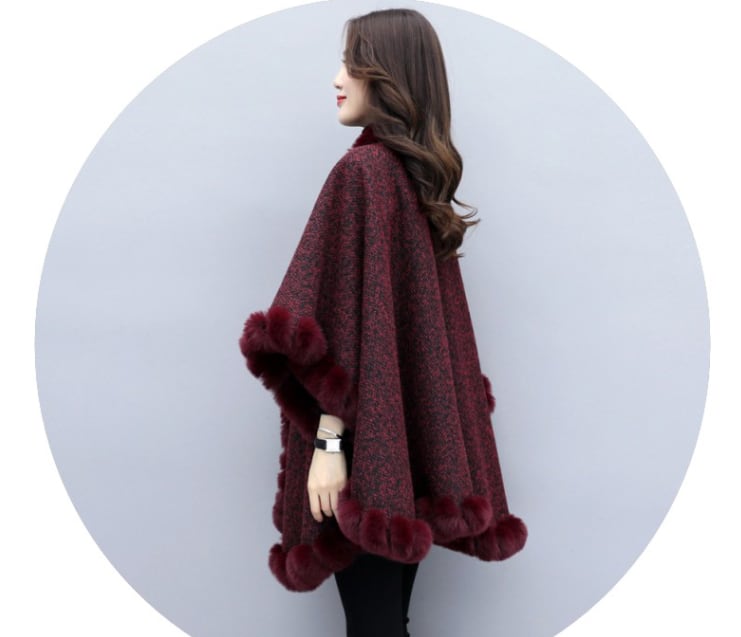 大人のゴージャス感が漂うポンチョコート。