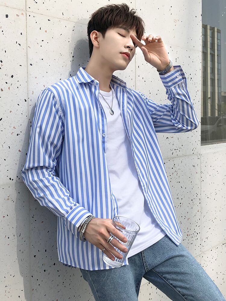 トップス シャツ 袖あり 長袖 襟付き ボタン 薄手 きれいめ シンプル カジュアル 大人 おしゃれ お洒落 かっこいい こなれ感 ラフ クール 抜け感 オールマッチ 高級感 ストライプ ランチ カフェ 10代 20代 30代 40代 メンズ 男性用 男の子 学生 お出かけ 公園デビュー 休日 アウトドア 高原 ガーデン 散歩 ショッピング 着回し 普段使い ファッション コーデ スタイル モテ プレゼント ギフト 激安 安い サイズ M L XL 2XL 色展開 赤 レッド 青 ブルー 灰色 グレー