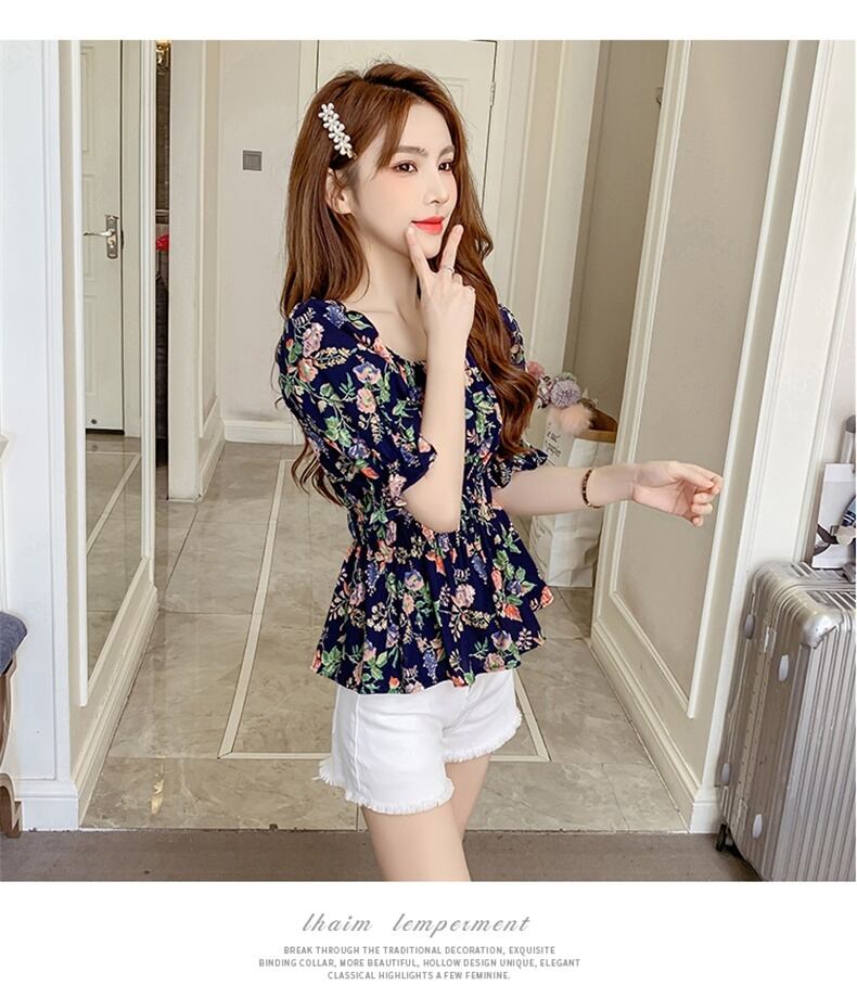 トップス 袖あり 半袖 パフスリーブ スクエアネック ストレート シャーリング かわいい 大人可愛い カジュアル おしゃれ お洒落 メンズライク ガーリー ラブリー キュート 花柄 夏 10代 20代 30代 レディース デート お出かけ ファッション モテ サイズ S M L XL 色展開 ホワイト ネイビー