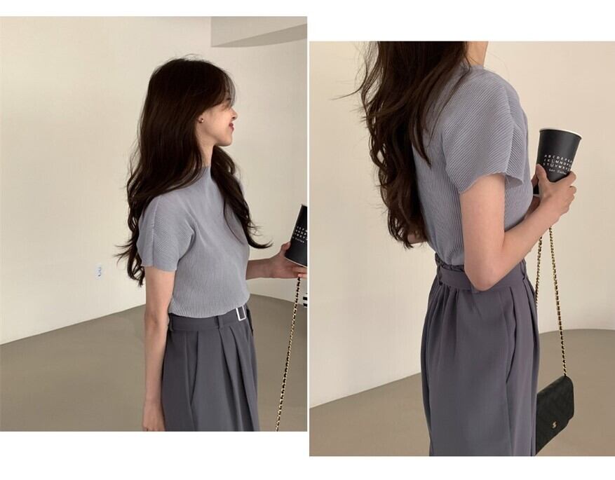 トップス ニットソー 袖あり 半袖 ハイネック ニット サマーニット かわいい 大人可愛い きれいめ シンプル カジュアル 大人 上品 おしゃれ 大人可愛い 大人女子 無地 春 夏 10代 20代 レディース 着回し 普段使い 重ね着 M 白 ホワイト 黒 ブラック 灰色 グレー