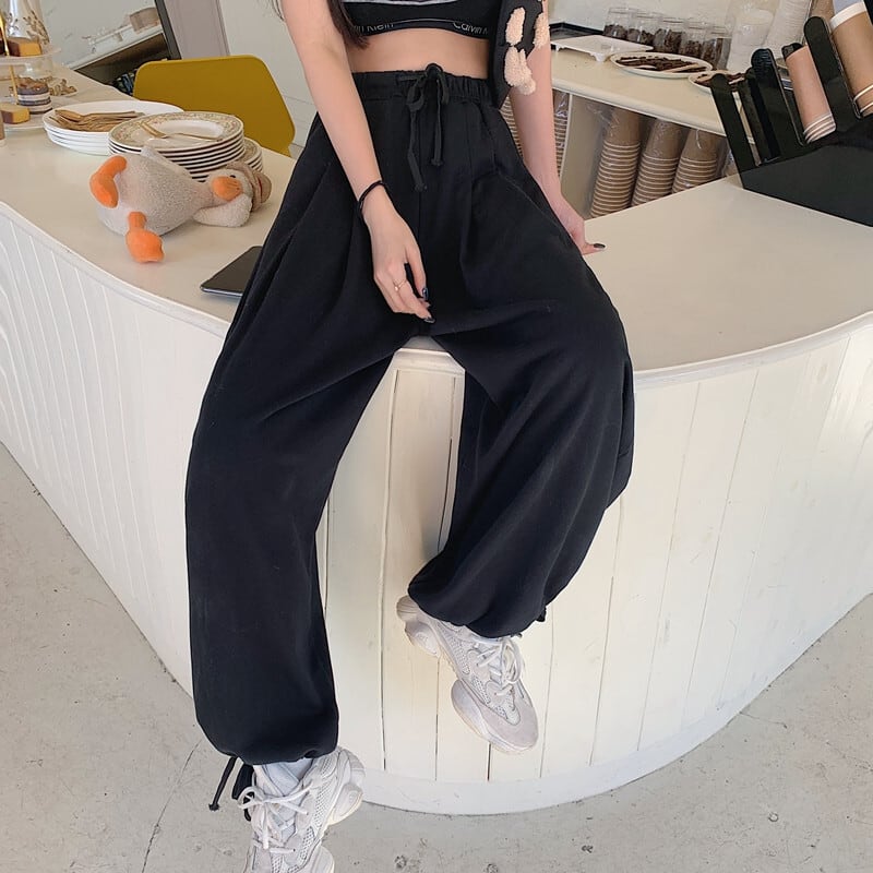 ボトムス パンツ レディース ワイドレッグパンツ ハイウエスト ストレートレッグ カジュアルパンツ オールマッチ スリム ポケット 着回し 普段使い 重ね着 お揃い 双子 韓国 韓国系 オルチャン ファッション コーデ スタイル 楽ちん 体系カバー 美脚 脚長 インスタ映え 定番 部屋着 パジャマ 楽ちん ゆったり 女子会 お泊まり 休日 運動 ジム ヨガ アウトドアこなれ感 ラフ メンズライク マニッシュ ボーイッシュ スポーティー ブラック グレー オールシーズン 春 夏 秋 冬 M L XL 2XL