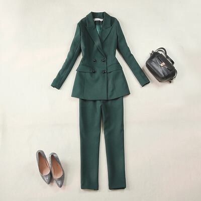 シックな大人カラーを3色揃えたスーツタイプのセットアップ。