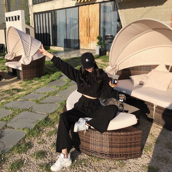 クロップド丈のフード付きパーカーとワイドレッグパンツの2点セット。ゆったりとしたシルエットでお家時間のリラックスタイムやストリートコーデにおすすめなアイテムです。