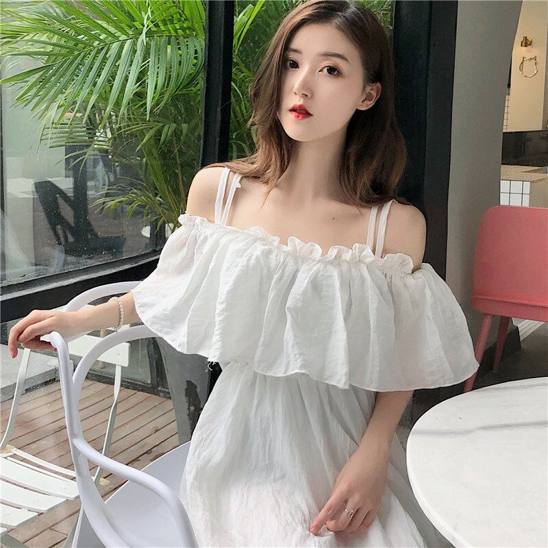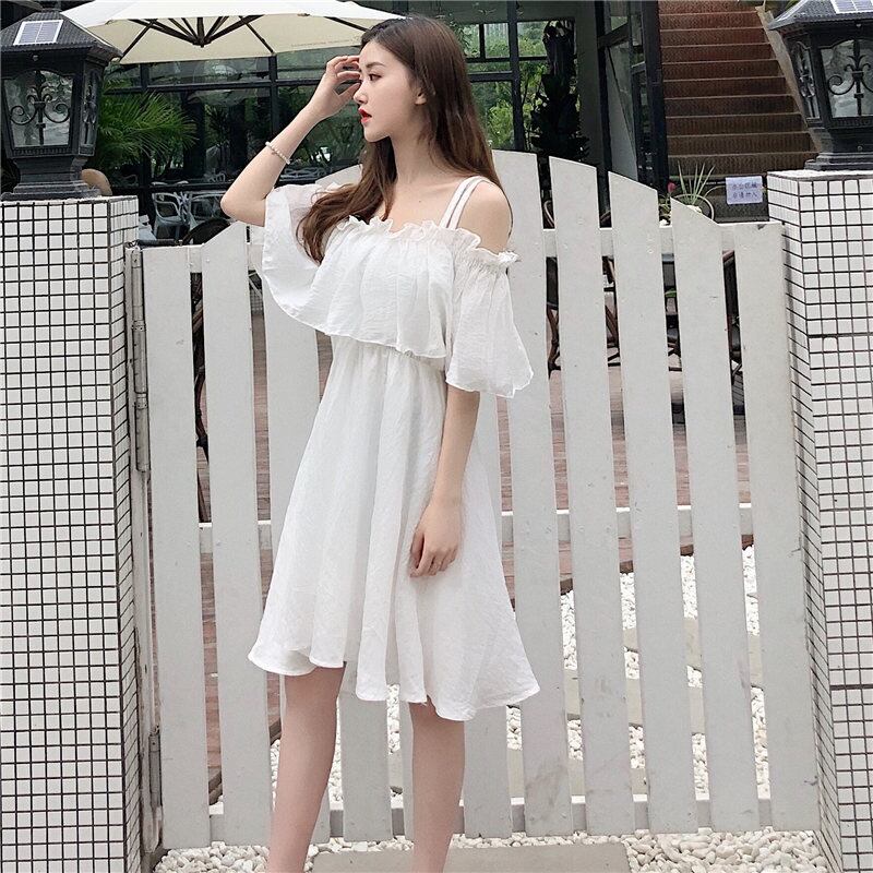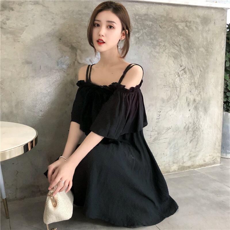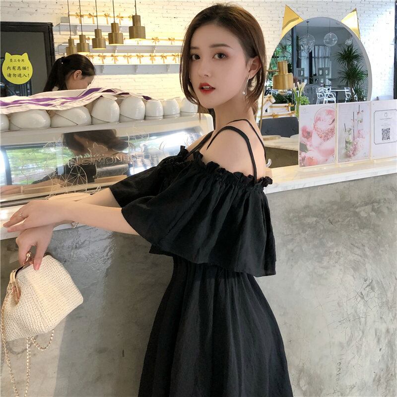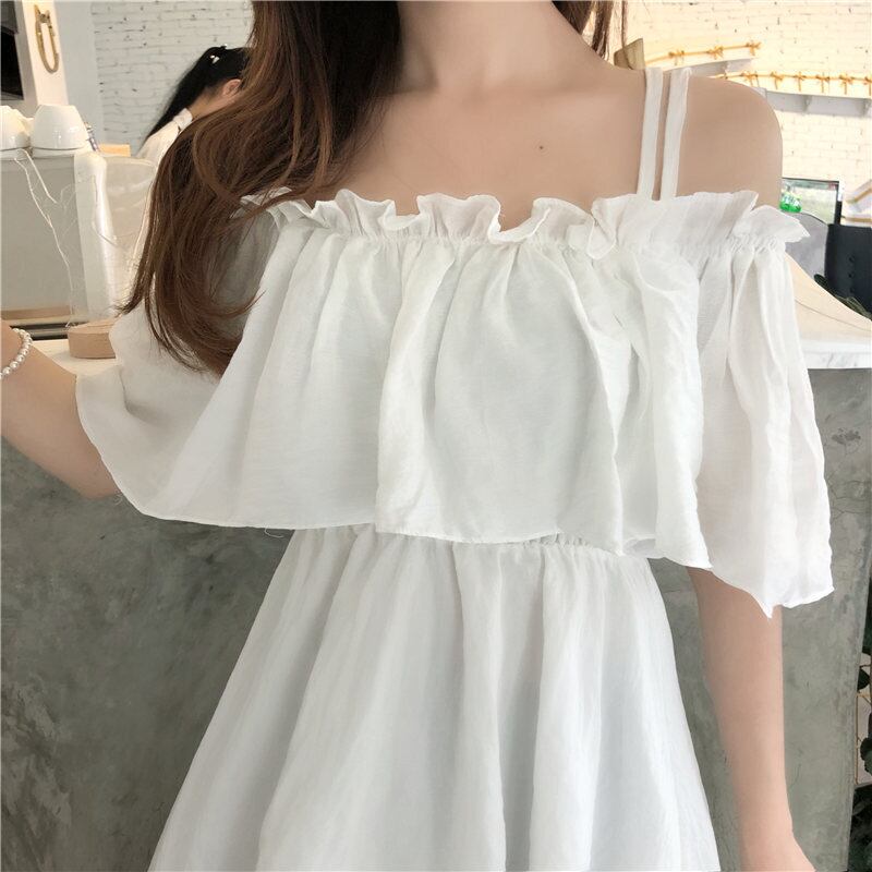 ワンピース キャミソール フレアワンピース ミドル丈 袖あり 半袖 オフショルダー Aライン バックレス 2way かわいい きれいめ カジュアル おしゃれ お洒落 メンズライク ガーリー セクシー ラブリー キュート 無地 夏 10代 20代 レディース デート お出かけ ファッション サイズ S M L 色展開 ホワイト ブラック